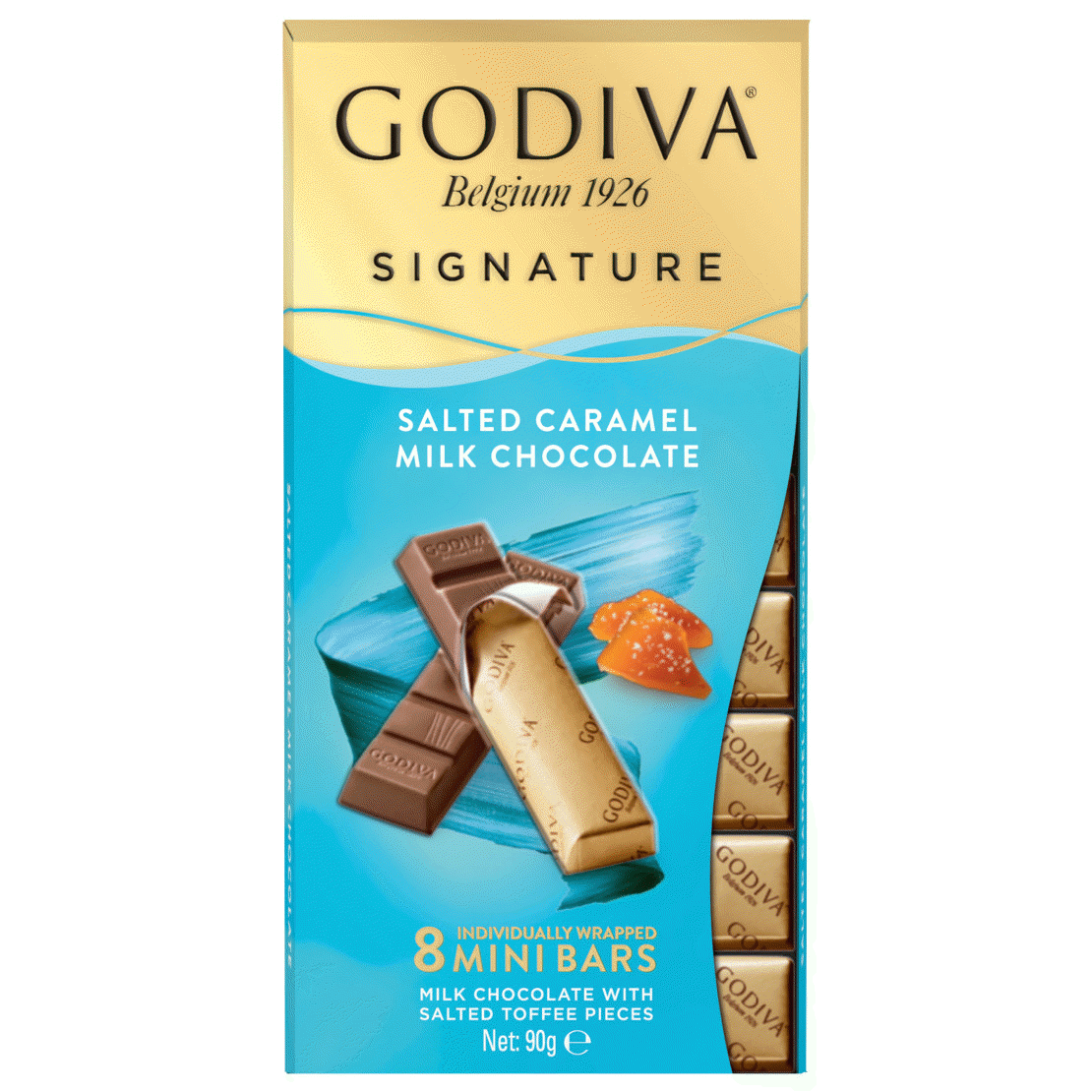 A smooth and indulgent treat: GODIVA’s salted caramel milk chocolate blends creamy Belgian milk chocolate with rich, golden caramel, perfectly balanced by a hint of sea salt. A luxurious combination of sweet and salty for a truly satisfying experience.