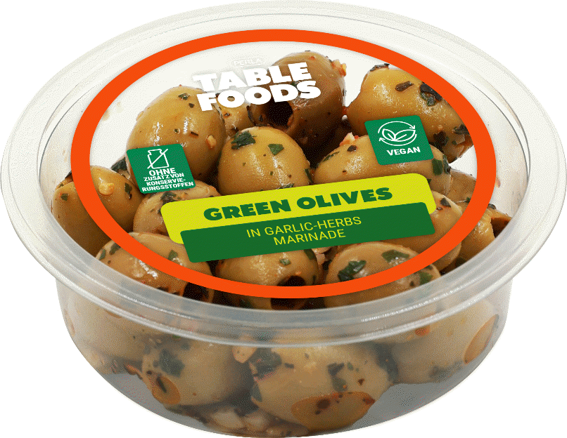 Green Olives in garlic-herbs marinade | Exhibitor on the Anuga 2025