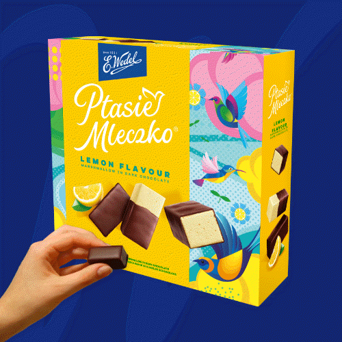 E.Wedel Ptasie Mleczko® Lemon combines a fluffy marshmallow filling with a refreshing lemon flavour, all coated in smooth chocolate. The zesty lemon brings a vibrant twist to the sweetness. This creates a perfectly balanced and refreshing treat.
