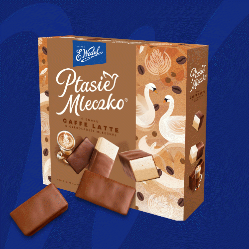 E.Wedel Ptasie Mleczko® Caffe Latte features a fluffy marshmallow filling with a creamy coffee flavour, wrapped in rich chocolate. This indulgent treat combines sweetness with the essence of coffee. It’s the perfect choice for coffee lovers looking for a delicate delight.