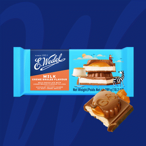 E.Wedel Milk Chocolate with Crème Brûlée offers a luxurious blend of creamy milk chocolate and the caramelized flavour of the classic dessert. The rich filling adds elegance and sweetness to every bite. Together, they create a truly outstanding chocolate experience.