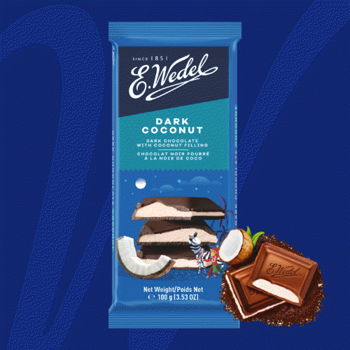 E.Wedel Dark Chocolate with Coconut Filling combines the rich intensity of dark chocolate with a smooth, creamy coconut centre. The tropical twist balances deep cocoa notes with sweet, aromatic coconut. Together, they create a delightful and exotic chocolate experience.