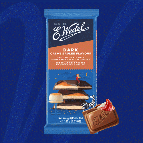 E.Wedel Dark Chocolate with Crème Brûlée Filling combines rich dark chocolate with a smooth, creamy dessert-inspired centre. The filling captures the essence of crème brûlée with sweet vanilla notes and a hint of caramelised flavour. Together, they create a sophisticated and indulgent chocolate experience.