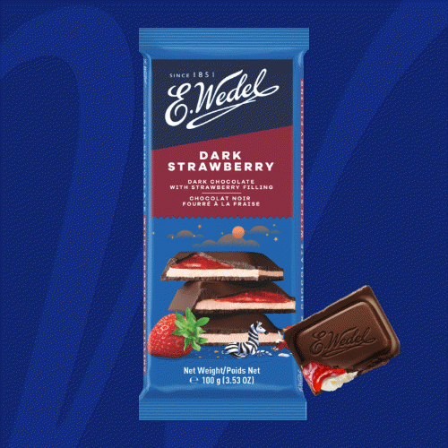 E.Wedel Dark Chocolate with Strawberry Filling features a luscious, fruity centre that enhances the rich flavour of dark chocolate. This combination creates a perfect balance of sweetness and tartness. It’s a refreshing yet indulgent treat for chocolate lovers.