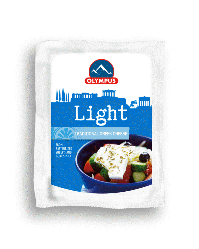 OLYMPUS Traditional Greek Cheese Light is made from 100% Greek reduced fat sheep and goat milk and matured following the traditional recipe. Rich and tangy flavor, crumbly texture, and high nutritional value!