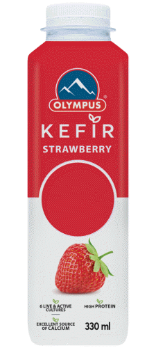 OLYMPUS Kefir Strawberry is rich in live and active kefir cultures and powerful probiotics, including Lactobacillus rhamnosus LGG® and Bifidobacterium BB-12®, produced according to the authentic recipe. Excellent source of protein, natural source of calcium and gluten free!
