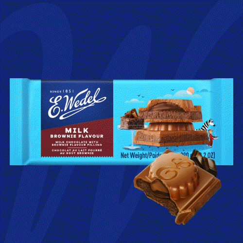 The intense taste of brownie meets the smoothness of velvety Wedel milk chocolate, creating a rich and indulgent experience inspired by classic American desserts. This large-format bar is perfect for sharing – or savouring piece by piece. A delicious fusion of bold flavour and creamy texture, made for true chocolate lovers.