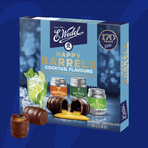 A whirl of delight for grown-up taste buds – this chocolate collection brings together a tempting cocktail mix of whisky, mojito, and other liqueur-inspired flavours, all hidden inside fine chocolate barrels. With 4% alcohol, it's a playful and indulgent treat made exclusively for adults. Perfect for gifting or sharing at festive gatherings.