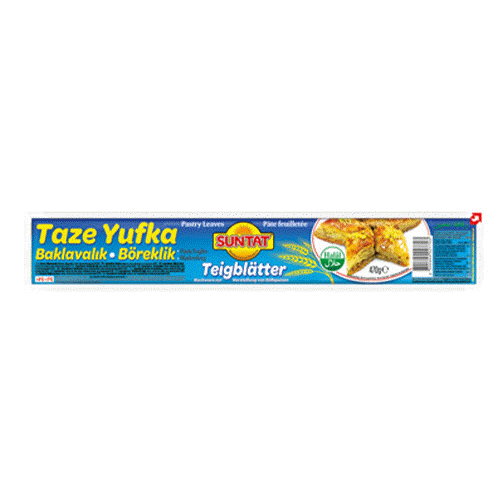 SUNTAT Fresh Phyllo Dough for Baklava & Börek is thinly rolled and ready to use. It makes preparing traditional Turkish desserts and savory pastry dishes quick and easy. Supplied in 470 g packs, available in 20-pack format – ideal for families, stocking up and food service.