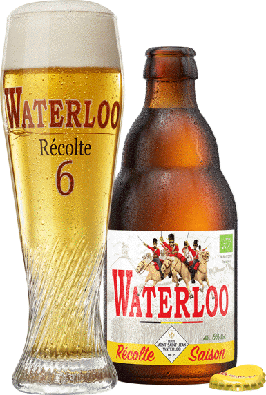 Waterloo Récolte Saison is a traditional, saison-style farm beer. It is brewed at Mont-Saint-Jean farm using organic barley and wheat that is grown on this organic farm’s fields. The ‘saison’ yeast that is used during the brewing process gives this beer its typical dry taste, with notes of mild clove. The 100% organic Belgian hops impart intense, persistent bitterness, conferring a delicate spiced temperament.