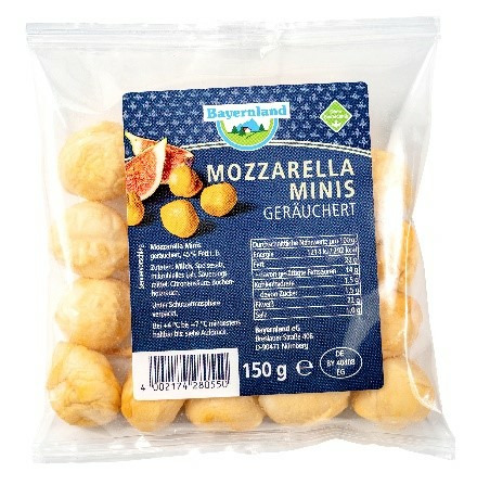 The smoking is done with the help of pure beech shavings. After the first smoking process, the mozzarella is dried and then cold-smoked at a maximum of 30 °C, cooled and packaged. The cold wood smoke gives the new Bayernland article in the full-fat stage a particularly delicate smoked aroma, making it a true gourmet creation for real connoisseurs.